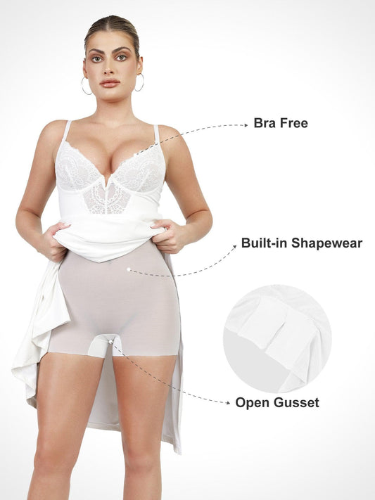 The Shapewear Dress Set Sheer Mesh Slip Split Midi